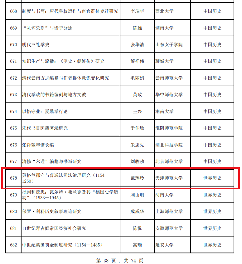 Chinese National Office for Philosophy and Social Sciences recently announced Post-funded Project of the National Social Science Fund of China. Dr. DAi Yaoling’s project Research on the Sheriff and Judicial Governance of Common Law in England (1154-1250) was listed.