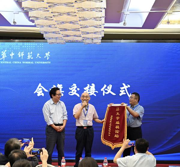 会议闭幕式由华中师范大学发展规划处处长、《大数据与中国历史研究》主编付海晏教授主持。《澳门理工学报》执行总编辑陈志雄、《史学理论研究》编辑崔瑾、《民俗研究》主编王加华、《陕西师范大学学报(哲学社会科学版)》主编冯立君、《世界历史评论》主编李文硕分别汇报了各分会场的讨论情况。全国高等学校文科学报研究会副理事长仲伟民教授与下一届学术期刊历史学编辑论坛承办单位《河北师范大学学报(哲学社会科学版)》编辑部谷更有教授交接了会旗。