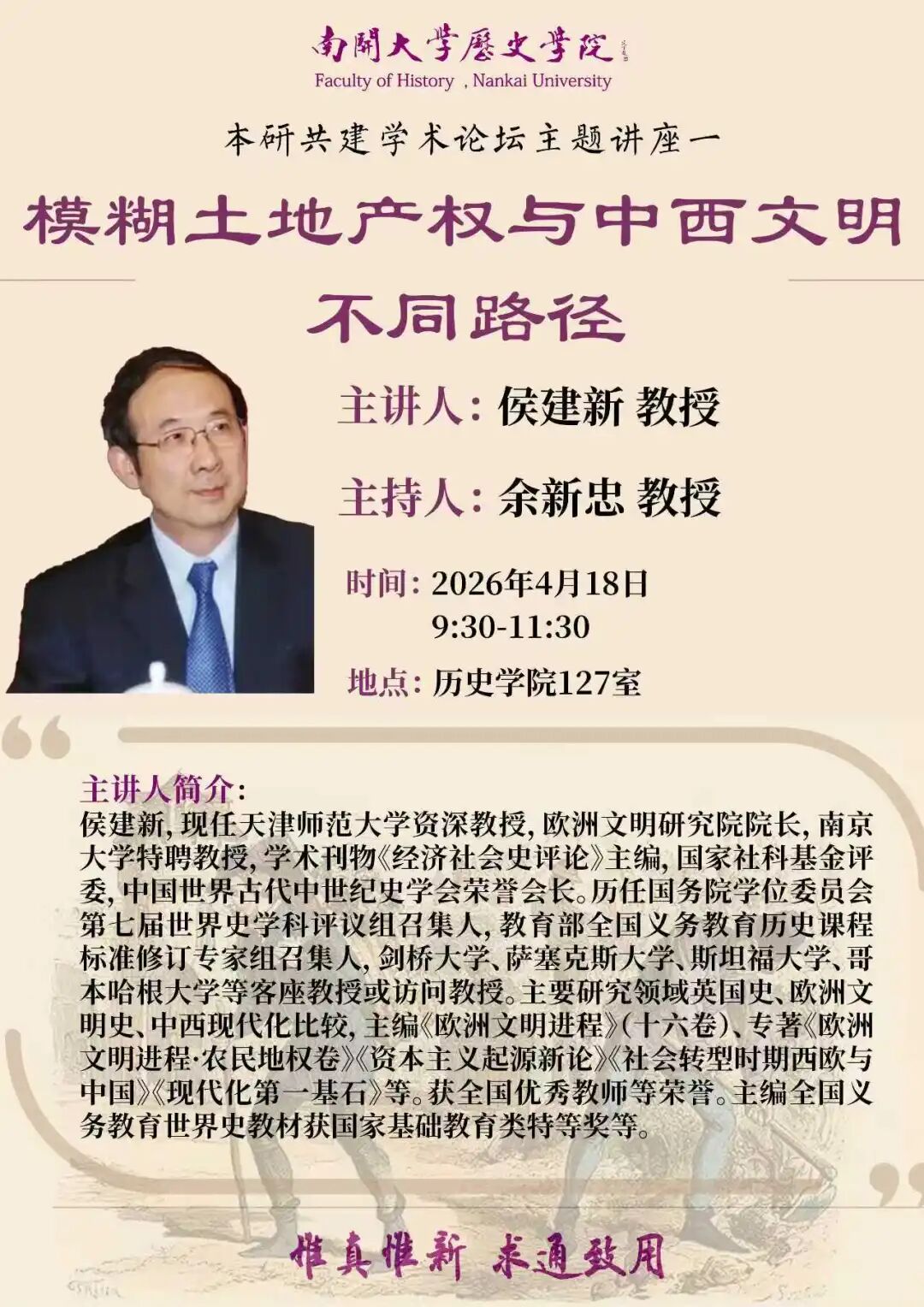 主讲人:侯建新(天津师范大学资深教授、欧洲文明研究院院长)